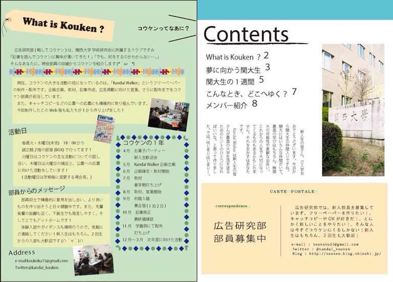 この度、「別冊Kandai Walker ー春の出会いー」を作りました!