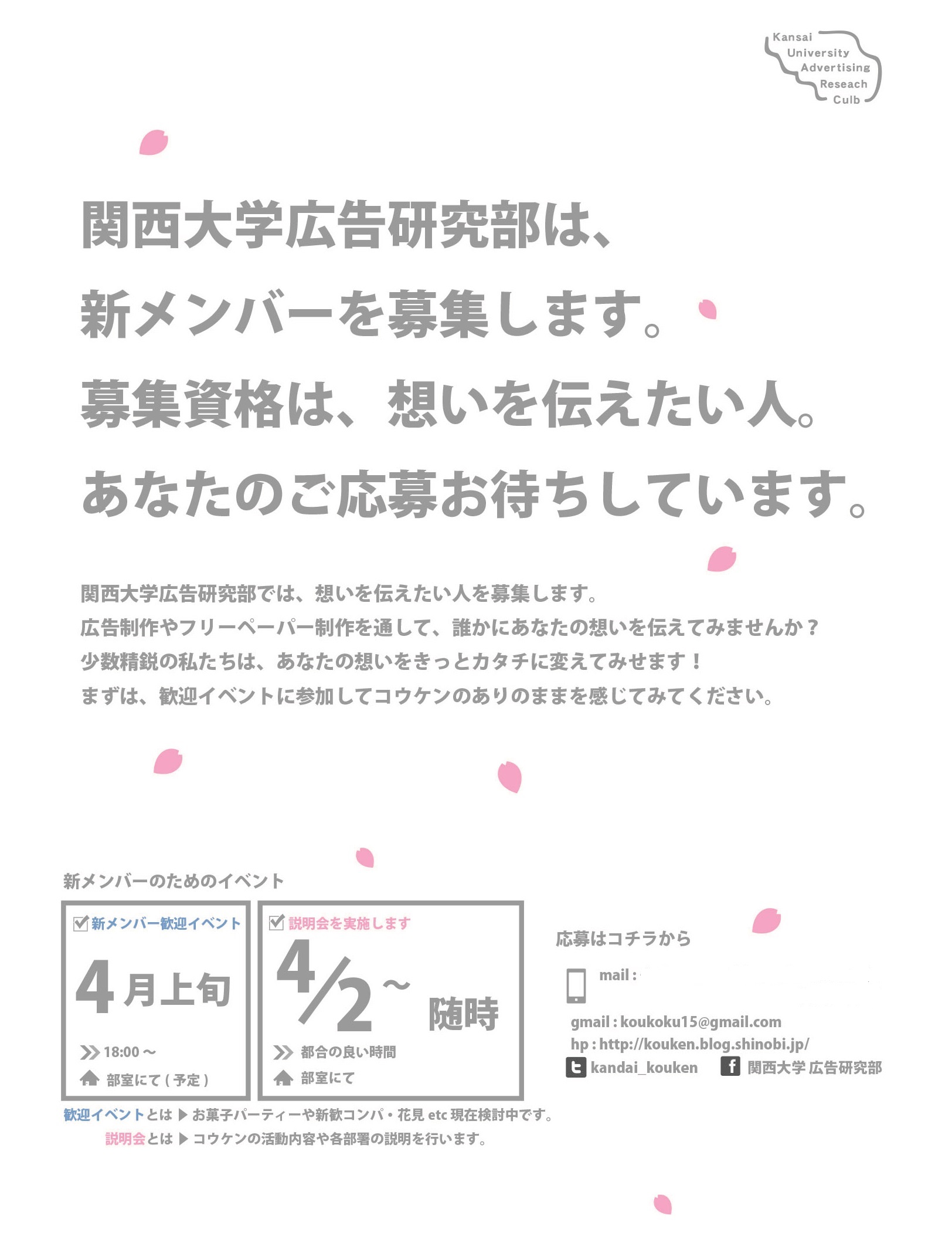 今日は関西大学広告研究部について、説明します。